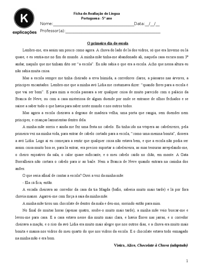7 - A que que a Mariana comparava a escola? Justifica retirando uma frase do texto.