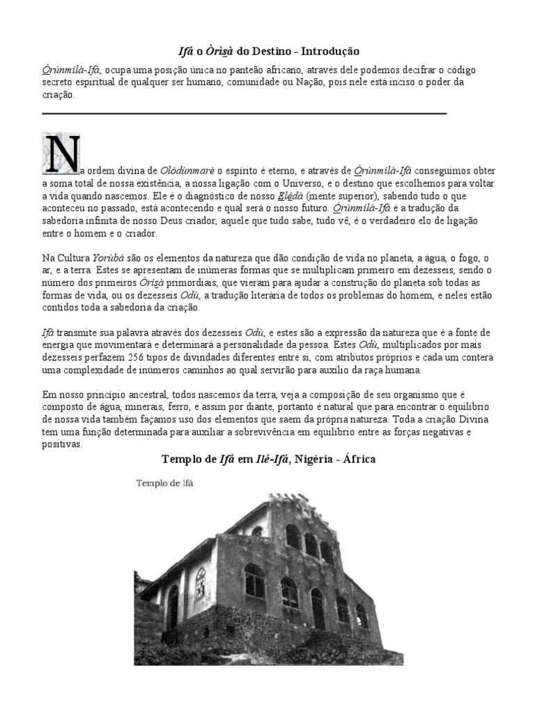 rnml-If, ocupa uma posio nica no panteo africano, atravs dele podemos decifrar o cdigo secreto espiritual de qualquer ser humano, comunidade ou Nao, pois nele est inciso o poder da criao.