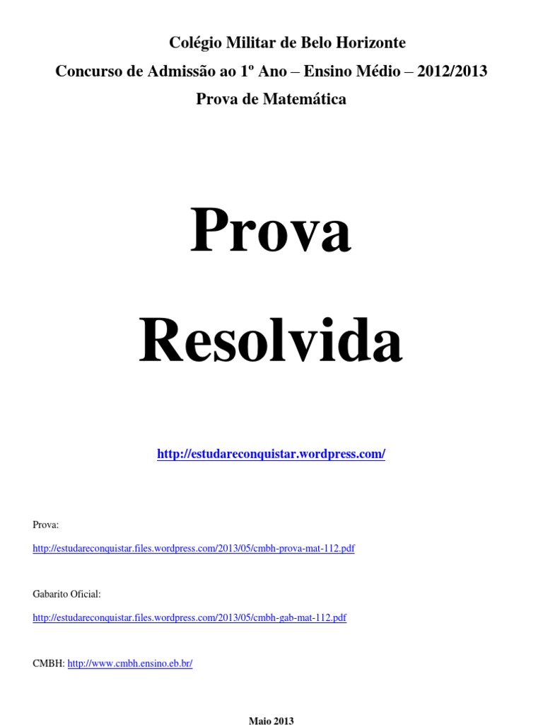 Colégio Militar de Belo Horizonte Concurso de Admissão ao 1º Ano – Ensino Médio – 2012/2013 Prova de Matemática