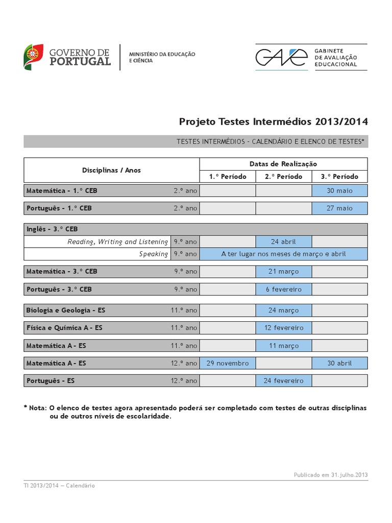 Publicado em 31.julho.2013 TI 2013/2014 Calendrio