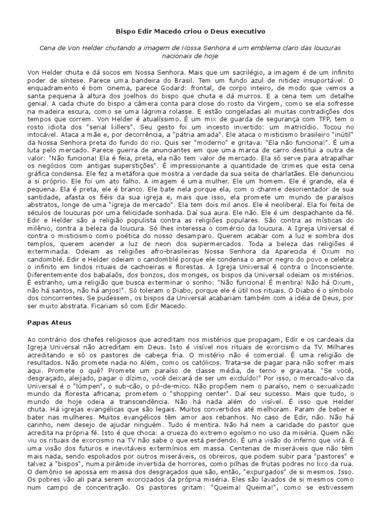 transformados em nós. Limpinhos poderão ir ao paraíso da burguesia". Mas, Edir também é a