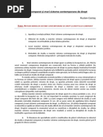 existena unui mare sistem de drept al statelor socialiste, creat, de altfel, prin receptarea, mai mult sau mai puin masiv, a dreptului sovietic n statele cu un sistem identic. Evenimentele petrecute n anii urmtori, n toate statele din estul Europei, desprirea Uniunii Sovietice, au dus la abandonarea modelului sovietic de dezvoltare, statele la care ne referim revenind spontan la principiile lor tradiionale, ataate toate marelui sistem juridic romano-germanic, desigur adaptnd legislaia la standardele internaionale, universale i regionale actuale. Test de evaluare: 1. Care sunt caracteristicile celor dou mari sisteme de drept, continental i anglo-saxon? 2. Este dreptul socialist un drept care a disprut complet de pe harta sistemelor juridice de drept, innd cont de aplicabilitatea sa n prezent? Aa cum arat, Benedicte Fauvarque-Cosson, ne aflm ntr-o prim perioad de tranziie, dei au intervenit schimbri profunde pe fondul internaionalizrii i europenizrii dreptului11. Continentul nostru este un laborator n care sunt experimentate noi viziuni pentru comparatiti asupra unui spaiu n continu micare. Acetia nu mai lucreaz cu un sistem juridic stabilizat deja prin codificare. Ei trebuie s sesizeze transformrile pe care le sufer dreptul s perceap(...)ritmul internaionalizrii i regionalizrii, s analizeze interaciunile ntre sistemele juridice. Comparatitii nu-i mai pot mai pot desfura activitatea dect lucrnd cu reelele universitare, ale instanelor judiciare naionale i internaionale, cu practicieni din diverse domenii, contribuind la crearea unui forum mondial12 n care s fie discutate soluiile