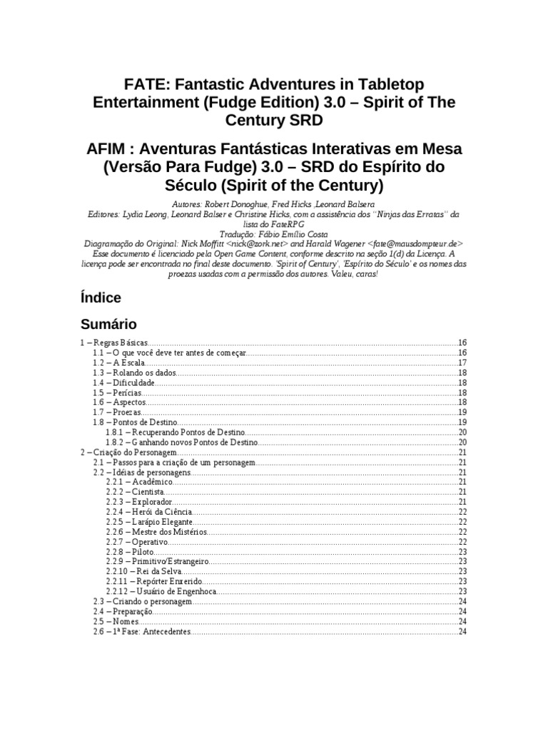 AFIM : Aventuras Fantásticas Interativas em Mesa (Versão Para Fudge) 3.0 – SRD do Espírito do Século (Spirit of the Century)