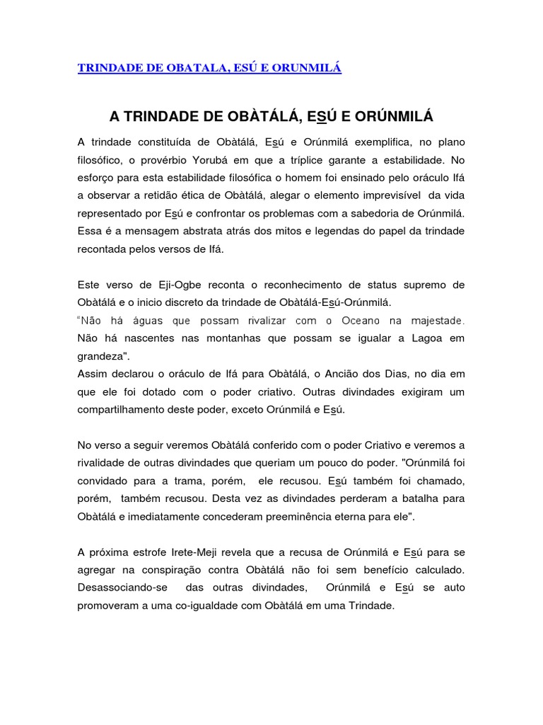 A trindade constituda de Obtl, Es e Ornmil exemplifica, no plano
