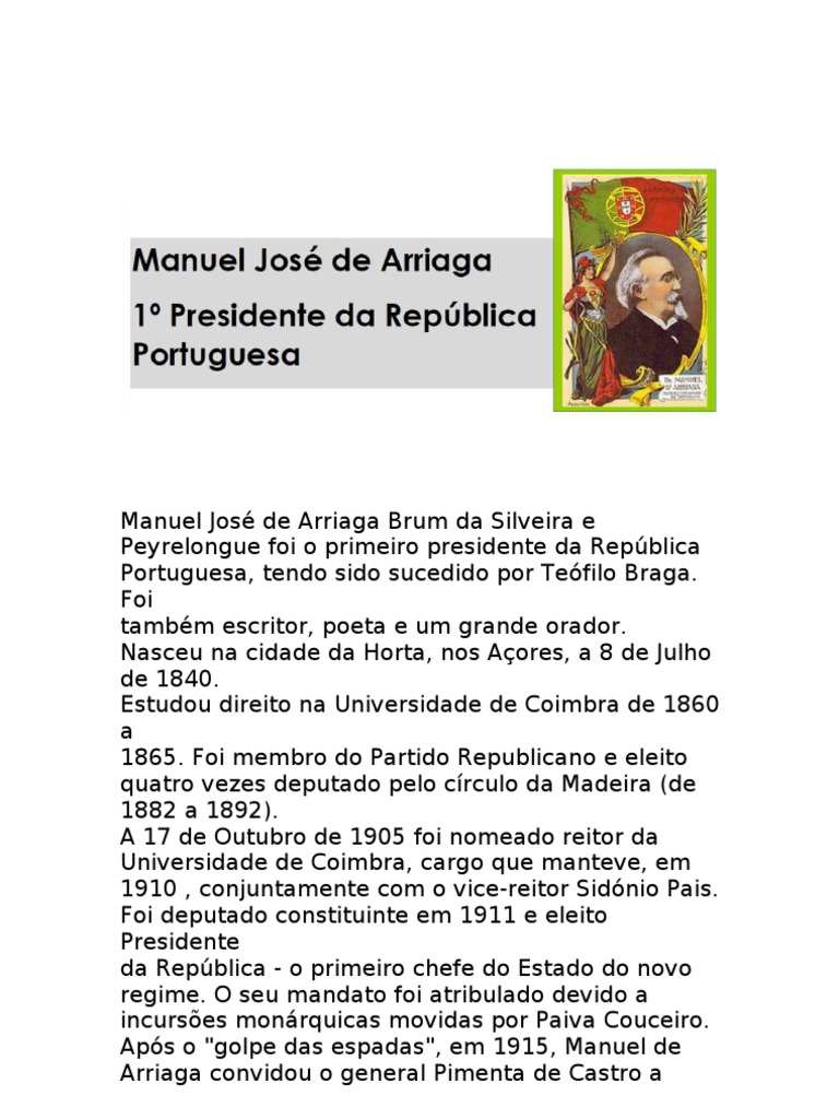 Portuguesa, tendo sido sucedido por Teófilo Braga.