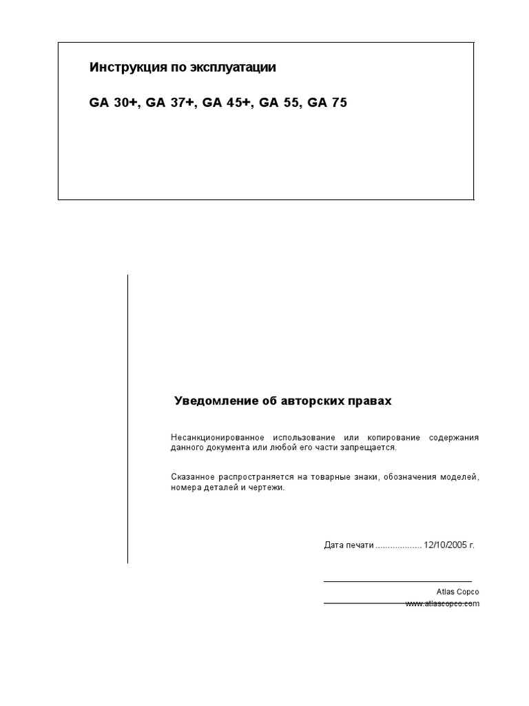 Instruction Atlas Copco Ga 55 (Mk5 STD)