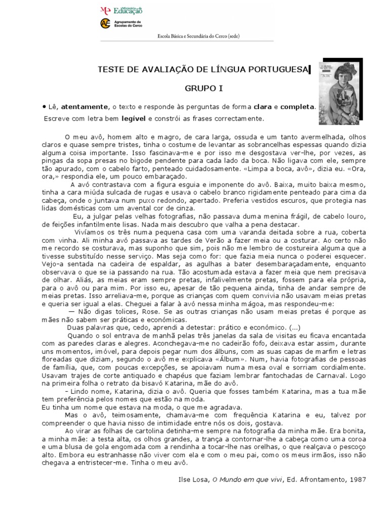 Elabora o retrato de um familiar que tenha tido particular relevo na tua infância. Não
