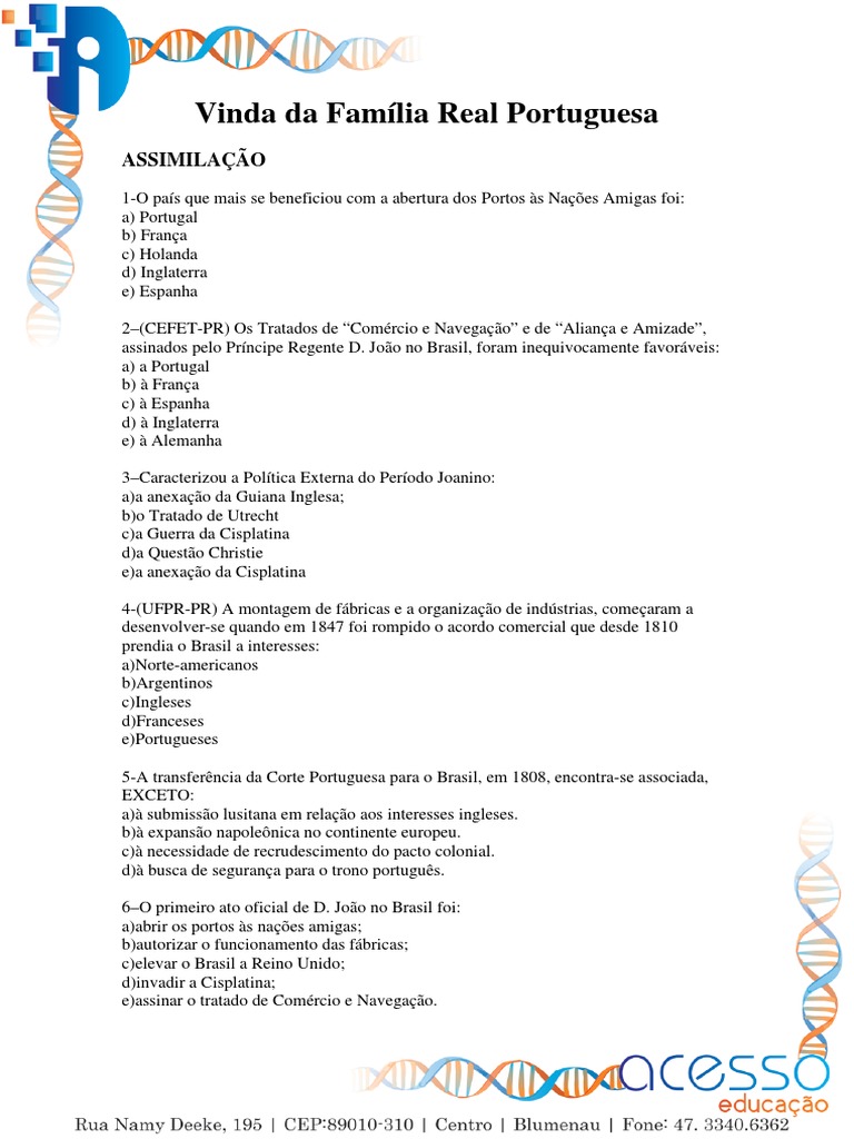 5-A transferncia da Corte Portuguesa para o Brasil, em 1808, encontra-se associada,