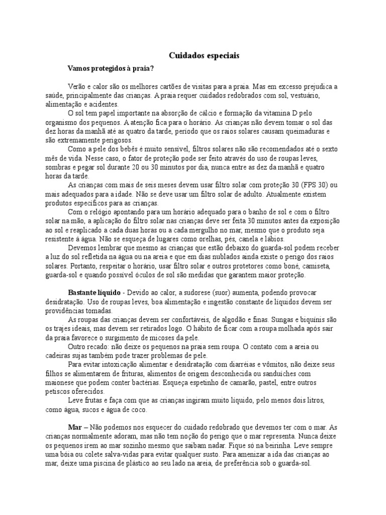 sade, principalmente das crianas. A praia requer cuidados redobrados com sol, vesturio,