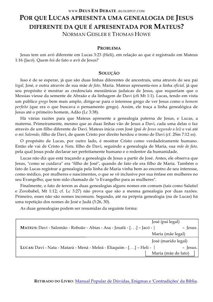 materna. Primeiramente, mesmo que as duas linhas vão de Jesus a Davi, cada uma delas o faz