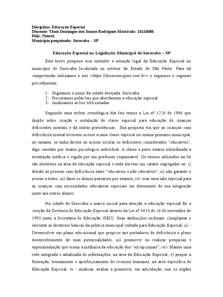 Educao Especial na Legislao Municipal de Sorocaba SP