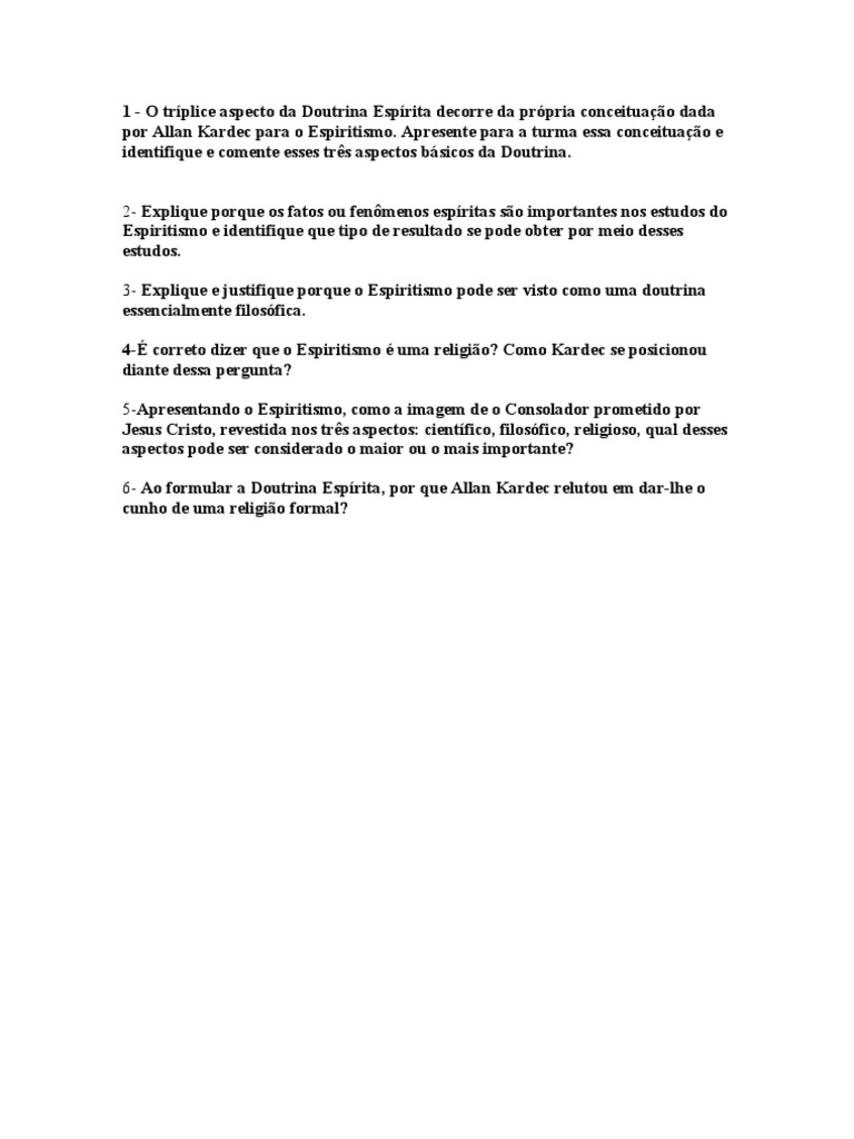 3- Explique e justifique porque o Espiritismo pode ser visto como uma doutrina