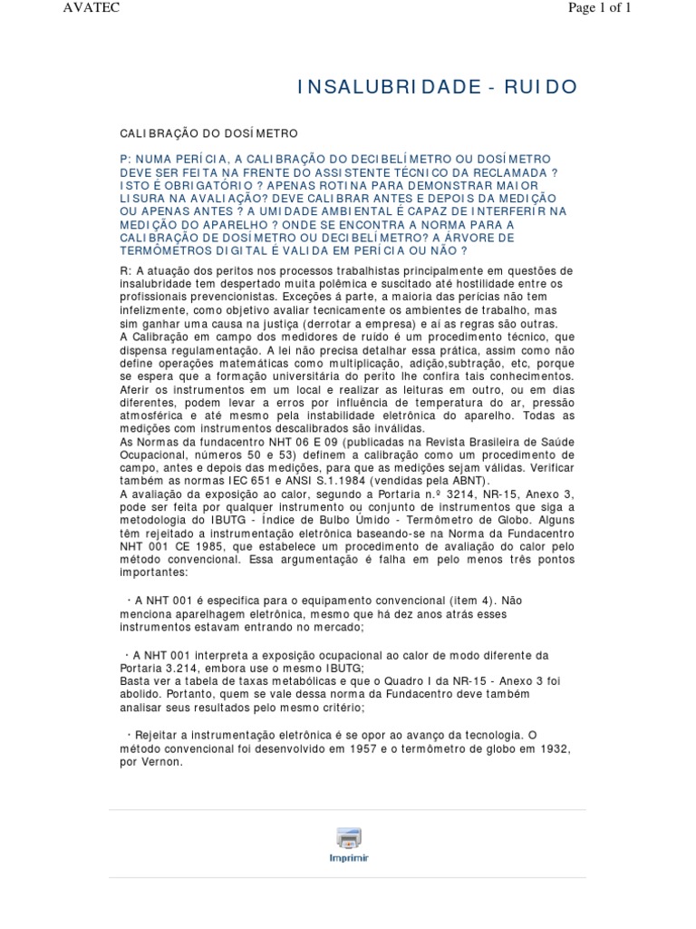 P: NUMA PERÍCIA, A CALIBRAÇÃO DO DECIBELÍMETRO OU DOSÍMETRO