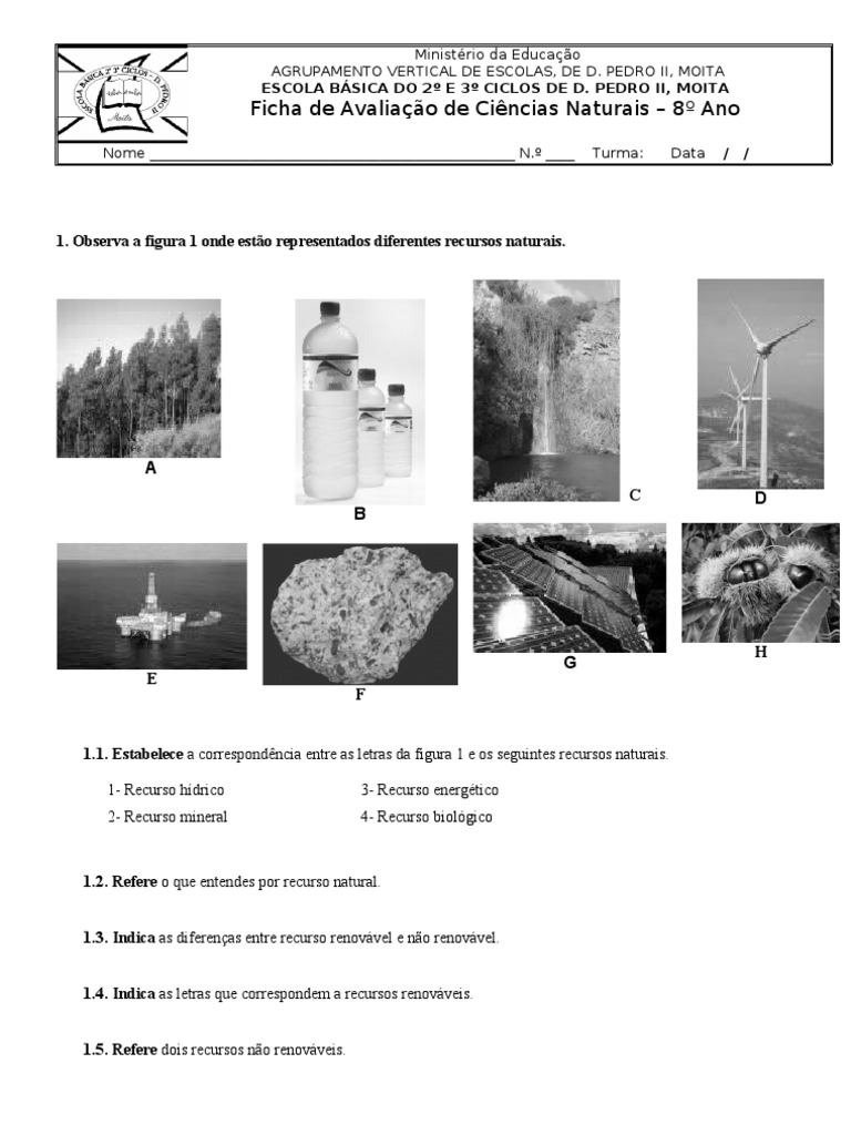 1. Observa a figura 1 onde estão representados diferentes recursos naturais.