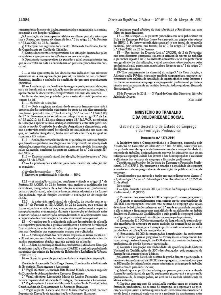 Bolsa de Emprego Público (www.bep.gov.pt), na página electrónica do IHRU, I. P., (www.portaldahabitacao.pt) e em jornal de expansão nacional, por extracto, nos termos do n.º 1 do artigo 19.º da Portaria