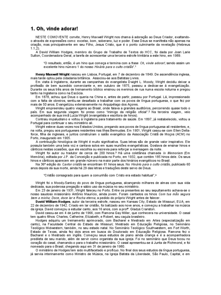 batista em todo o Brasil. Hodges também preparou o livreto Sete hinos congregacionais para a Igreja de hoje,