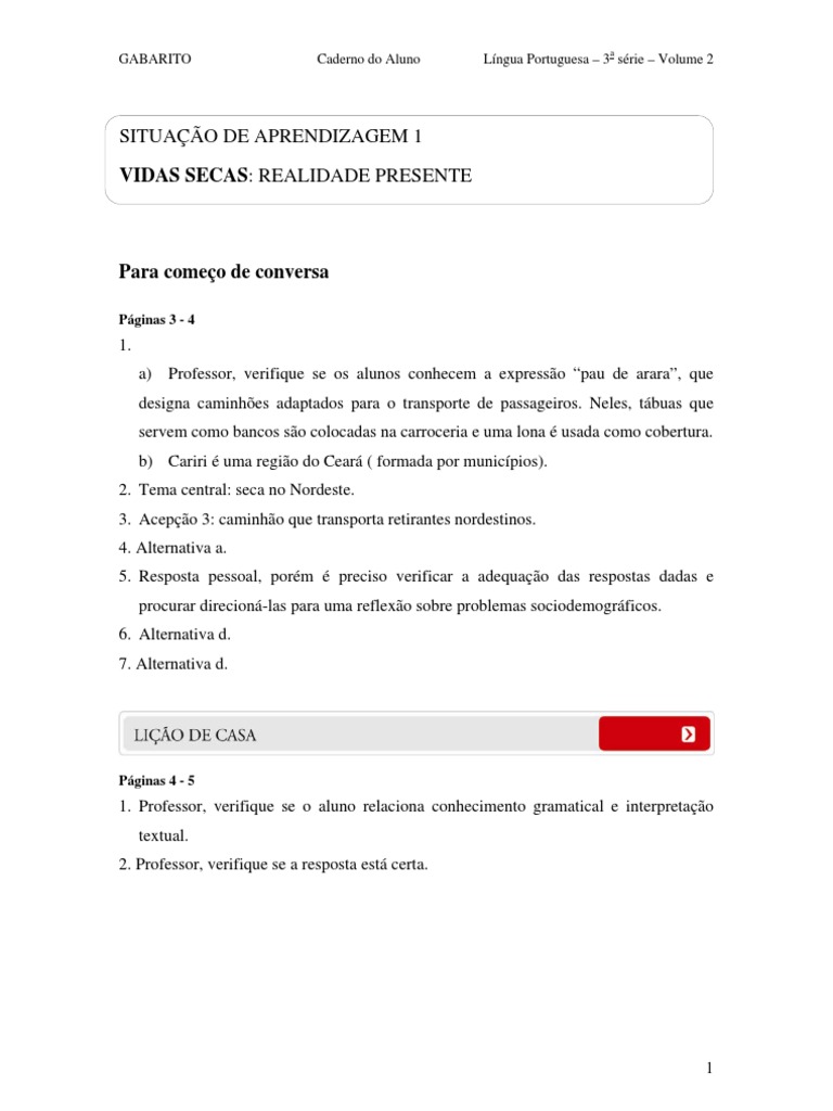 GABARITO Caderno do Aluno Língua Portuguesa – 3a série – Volume 2