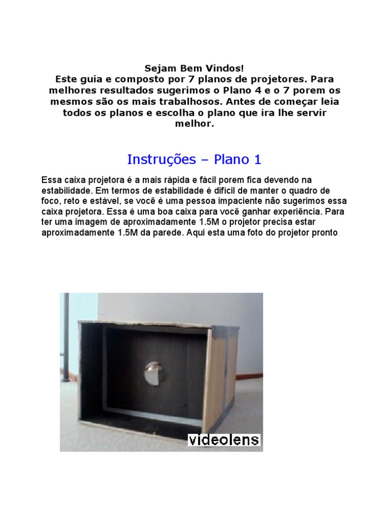 Sejam Bem Vindos! Este guia e composto por 7 planos de projetores. Para melhores resultados sugerimos o Plano 4 e o 7 porem os mesmos são os mais trabalhosos. Antes de começar leia todos os planos e escolha o plano que ira lhe servir melhor.