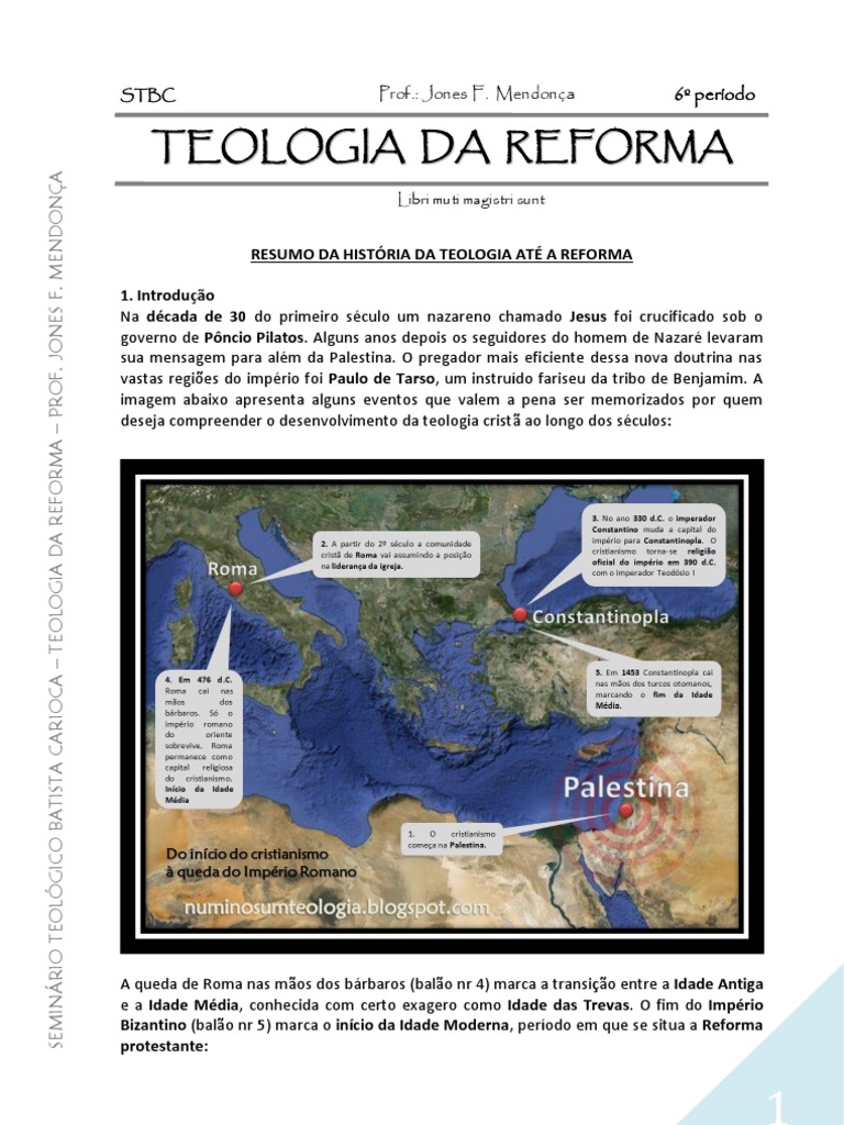 SEMINRIO TEOLGICO BATISTA CARIOCA TEOLOGIA DA REFORMA PROF. JONES F. MENDONA