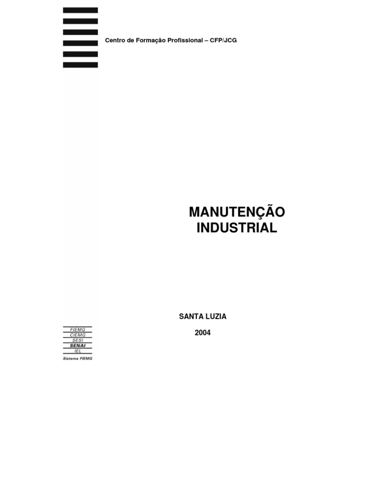 1. A Evoluo da Manuteno........................................................... 4 2. Gesto estratgica da manuteno............................................... 5 3. Sistema de Manuteno............................................................... 7 3.1. Montando um sistema de Manuteno....................................... 7 3.2. Tipos de Manuteno................................................................. 8 4. Administrao da manuteno .................................................... 10 5. Planejamento e Programao da Manuteno (PCM) ................ 14 5.1. Conceitos que devem orientar um planejamento de manuteno 14 5.2. Os Objetivos Gerais do Planejamento da Manuteno: ........... 16 5.3. Formas de entradas de servios na manuteno, composio de um plano mestre de manuteno e de uma ordem de servio .......... 17 5.4. O Conceito do back log para busca da eficincia da manuteno : 19 5.5. Exemplos de ndices que medem custos e a confiabilidade..... 19 5.6 Elementos da programao de atividades................................ 19 5.7 Etapas na formulao de um planejamento de curto mdio e longo prazos:..................................................................................... 19 6 Ferramentas e mtodos para melhorias na confiabilidade .......... 19 6.1 AVALIANDO A CONFIABILIDADE DE UM SISTEMA .............. 19 6.2 FMEA (ANLISE DOS MODOS E EFEITOS DE FALHAS)......... 19 6.3 - FTA ARVORE DE ANALISE DE FALHA .............................. 19 6.4- MASP MTODO DE ANLISE E SOLUO DE PROBLEMAS .......................................................................................................... 19 7 Qualidade total na manuteno................................................... 19 8 A Filosofia TPM........................................................................... 19 9 Custos de Manuteno Industrial ................................................ 19 10 Terceirizao na Manuteno .................................................. 19 11 Softwares de Manuteno........................................................ 19 12 Prtica do contedo do curso de manuteno ......................... 19