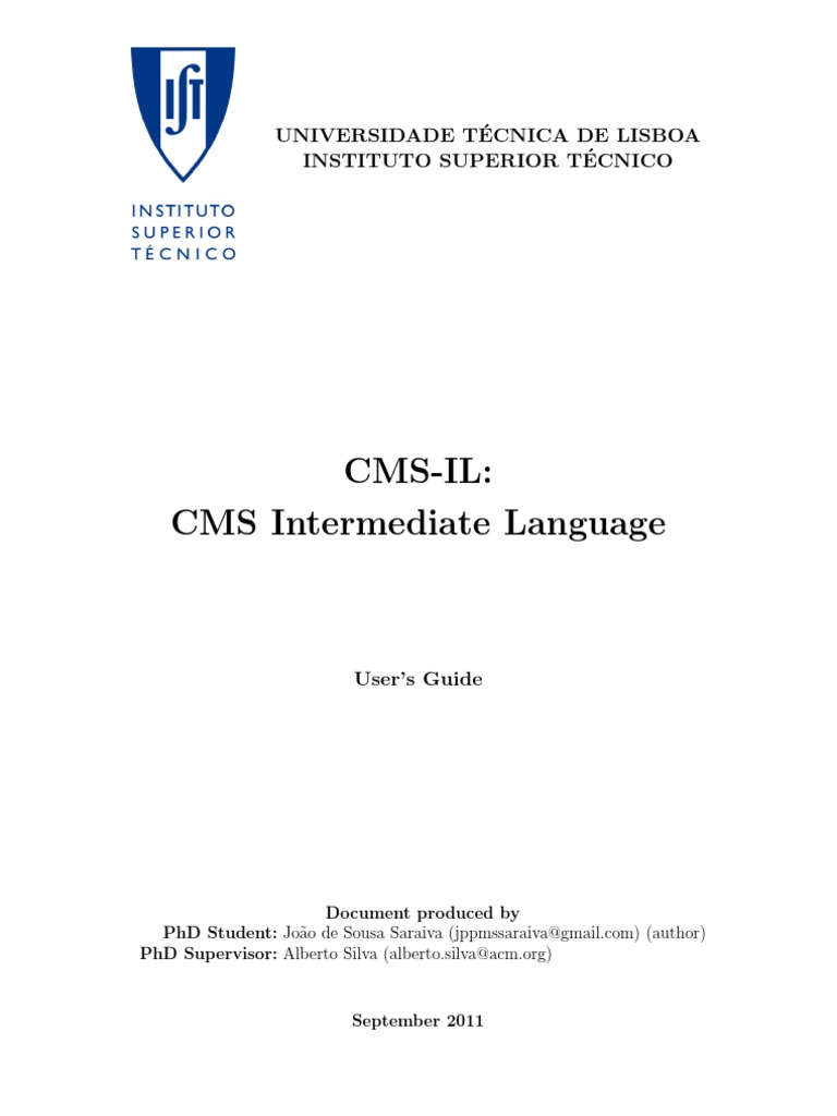 In this manual, we have presented the CMS-IL language. The WebSite Template and Toolkit models have been explained in great detail, and their concepts have been dened. Finally, we have presented an example of both types of models: (1) a WebSite Template for a Personal WebSite; and (2) a Toolkit for performing some operations regarding Document management.