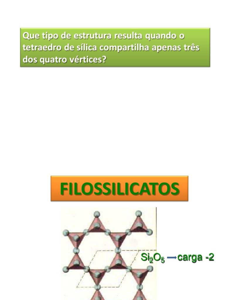 Seguindo a mesma lógica, as duas camadas de oxigênios podem ser ligadas ao Si, formando filossilicatos com: