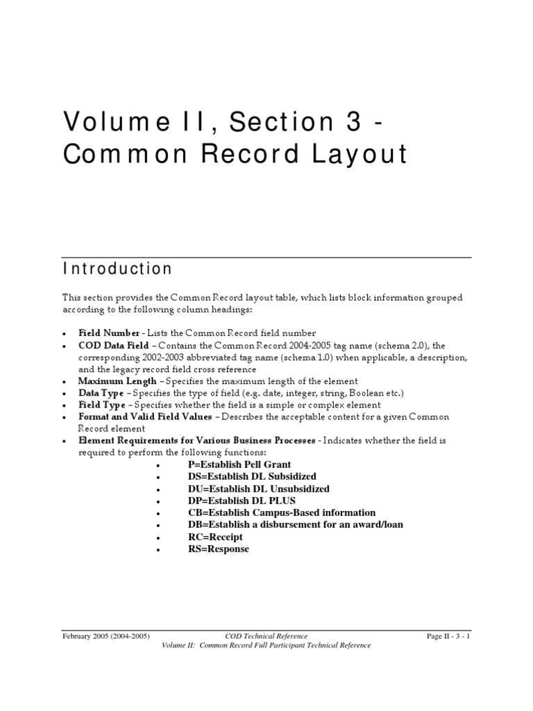 1. <CommonRecord NA NA Complex http://www.ed.gov/FSA/COD/20 R R R R R R R R