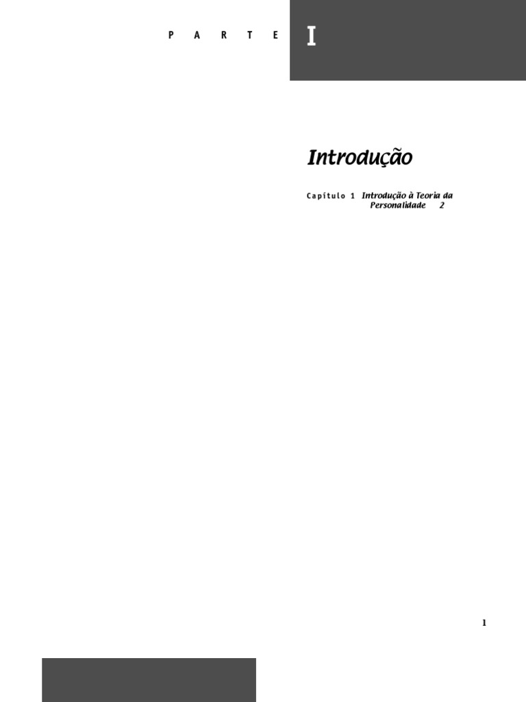 Os psiclogos discordam acerca do signicado da personalidade. A maior parte concorda que a palavra personalidade teria se originado do latim persona, que se refere a uma mscara teatral utilizada pelos atores romanos na encenao de dramas gregos. Os antigos atores romanos usavam uma mscara ( persona) para desempenhar um papel ou obter uma falsa aparncia. Esse ponto de vista super cial obviamente no uma denio aceitvel. Quando os psiclogos usam o termo personalidade, esto se referindo a algo alm dos papis desempenhados pelas pessoas. Contudo, os tericos da personalidade no concordaram a respeito de uma denio nica de personalidade. De fato, desenvolveram teorias exclusivas e vitais porque no conseguiam alcanar um consenso com relao natureza da humanidade e porque cada um via a personalidade de acordo com um ponto de referncia individual. Os tericos discutidos neste livro so de diversas origens. Alguns nasceram e viveram na Europa por toda a vida; outros nasceram na Europa, mas migraram para outras partes do mundo, especialmente para os Estados Unidos; outros, nasceram na Amrica do Norte e l permaneceram. Muitos foram in uenciados por experincias religiosas na juventude. A maioria formada em psiquiatria ou psicologia. Vrios deles utilizaram suas experincias como psicoterapeutas; outros se basearam mais na pesquisa emprica para coletar dados sobre a personalidade humana. Embora todos tenham lidado de alguma forma com aquilo que chamamos personalidade, cada um abordou esse conceito global com base em uma perspectiva diferente. Alguns tentaram construir uma teoria abrangente; outros foram menos ambiciosos e se ativeram apenas a alguns aspectos da personalidade. Poucos tericos da personalidade a deniram formalmente, embora todos possussem seu prprio conceito sobre ela.