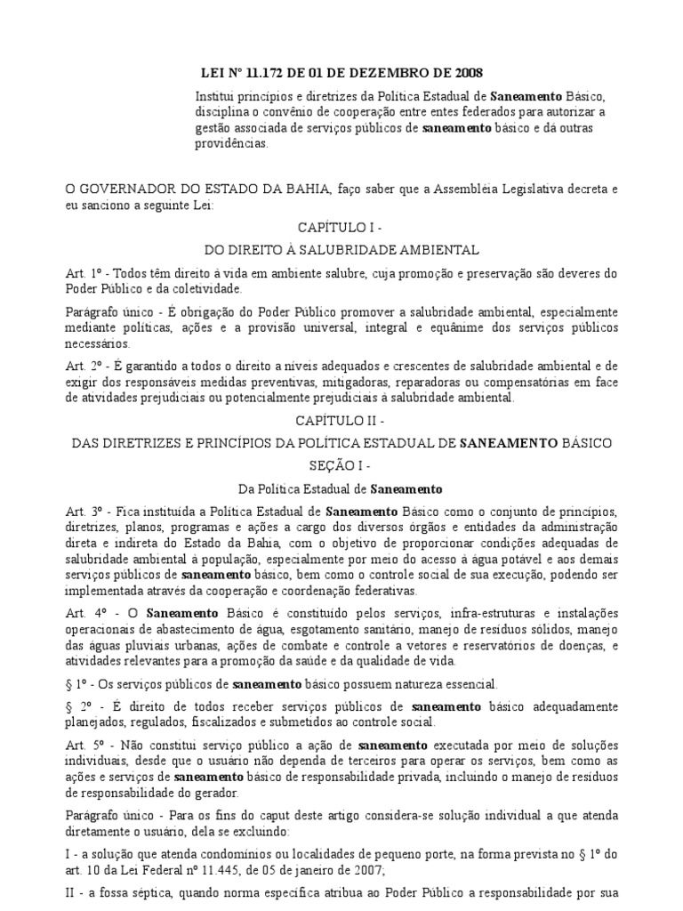 - o Plano Estadual de Saneamento Básico previsto no art. 229 da Constituição do Estado da Bahia |