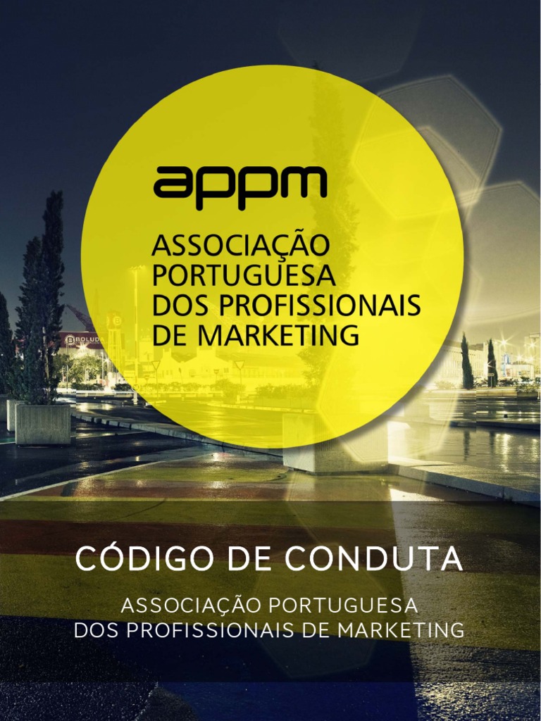 O objectivo do presente Cdigo de Conduta promover e manter, para o benefcio dos profissionais de marketing, das empresas e organizaes e dos consumidores, padres elevados de percia, capacidade e integridade profissionais, no exerccio das funes de marketing, vendas e servios. Os membros da Associao Portuguesa dos Profissionais de Marketing, abaixo designada por APPM, esto obrigados a uma conduta de tica profissional aceitando, implicitamente e por dever de associao, o cumprimento deste Cdigo, conduta desejavelmente extensiva a todos os profissionais da rea mesmo que no membros da Associao.