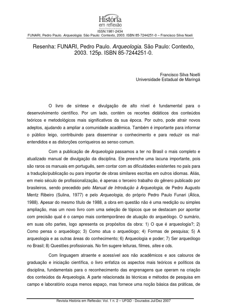 Resenha: FUNARI, Pedro Paulo. Arqueologia. São Paulo: Contexto, 2003. 125p. ISBN 85-7244251-0.