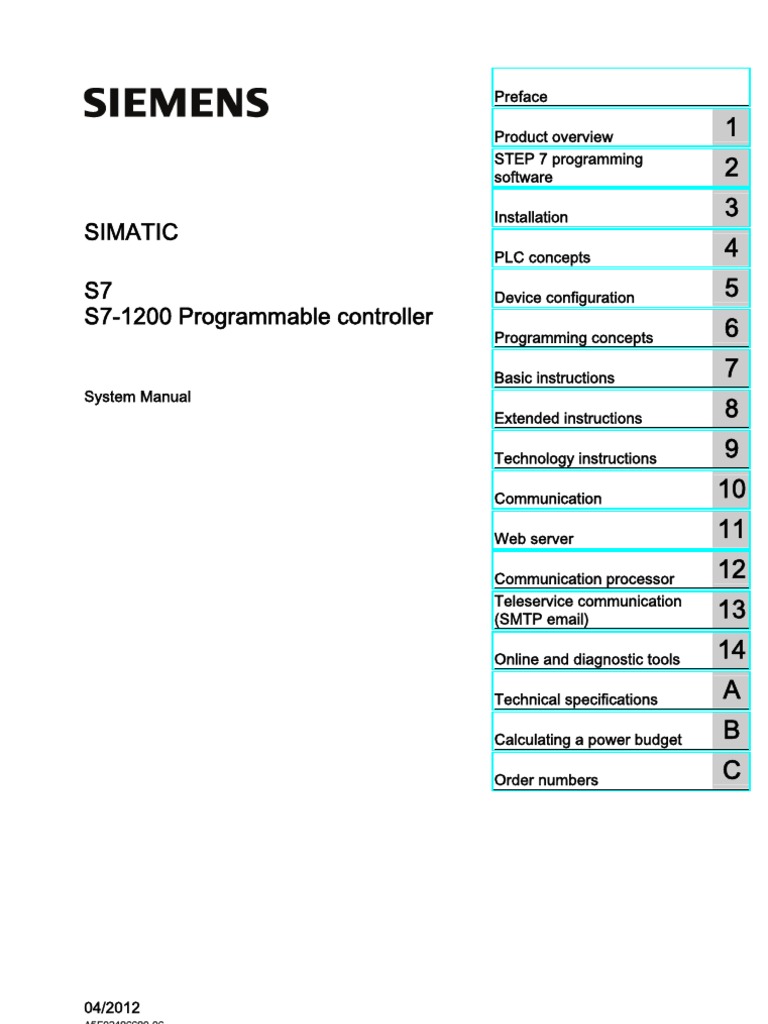 This manual provides information about installing and programming the S7-1200 PLCs and