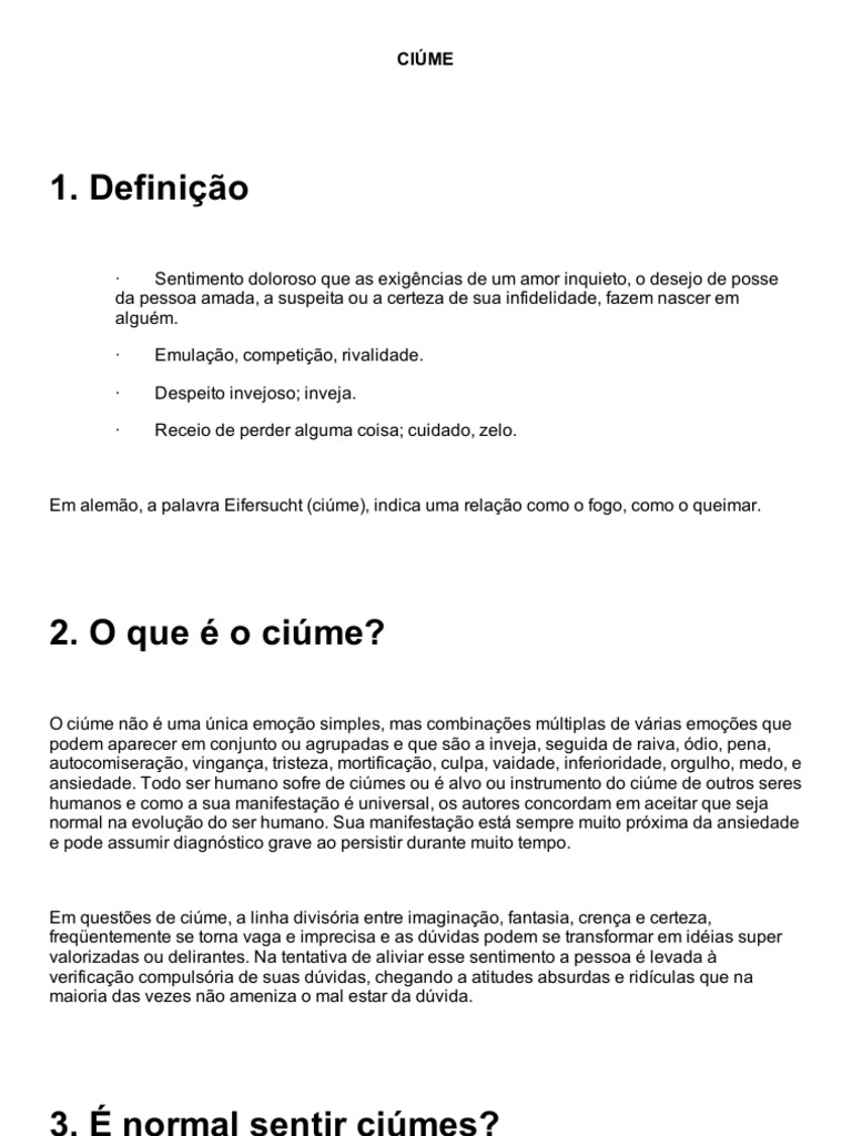 Sim, sentir cimes normal. To normal quanto sentir saudades. Assim como a saudade, o cime um sentimento normal quando surge como resposta a uma situao real, imediata, com sua durao limitada h um tempo que nem sempre definido, porm certamente limitado.