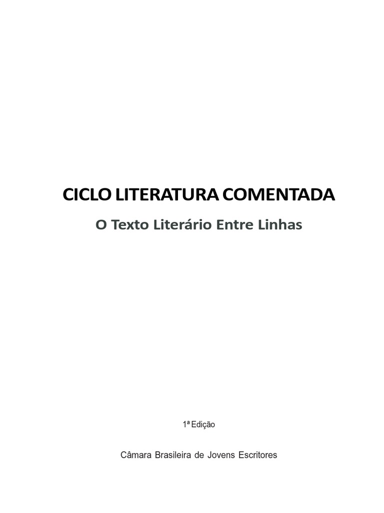 Esta coletnea rene estudos sobre um conjunto de romances, alvo de discusso no I Ciclo Literatura Comentada, realizado, de abril a dezembro de 2012, pelo Centro Acadmico Vincius de Morais CALVM (rgo estudantil vinculado ao Curso de Letras da Faculdade So Lus de Frana), com o apoio da gesto acadmica e dos professores do curso. Concebido como um projeto de extenso ligado monitoria da disciplina Teoria Literria, de realizao anual, o Ciclo Literatura Comentada, tem por finalidade levar estudantes, professores, pesquisadores e demais interessados a um debate sobre obras literrias canonizadas pela crtica especializada e legitimadas pelas instituies oficiais do saber. O projeto, proposto pela ento monitora da disciplina Ellen dos Santos Oliveira, surgiu da percepo da falta de familiaridade com a produo cannica estudada ao longo da formao em Letras, observada, sobretudo, entre os recm ingressos no curso. Esse quadro apontava para a necessidade de se promover, no mbito do Ensino Superior, atividades complementares no sentido de contribuir ampliao do horizonte de leituras do licenciando em Letras, tendo-se em vista, de modo especial, a atuao do futuro professor da rea no mbito do Ensino Bsico, para quem, a nosso ver, se torna indispensvel certa familiaridade com essa produo. De fato, lamentavelmente, observa-se que, muitas vezes, o estudante de Letras ingressa no curso parcial ou totalmente destitudo Prova 01 da vivncia literria que lhe ser exigida durante a