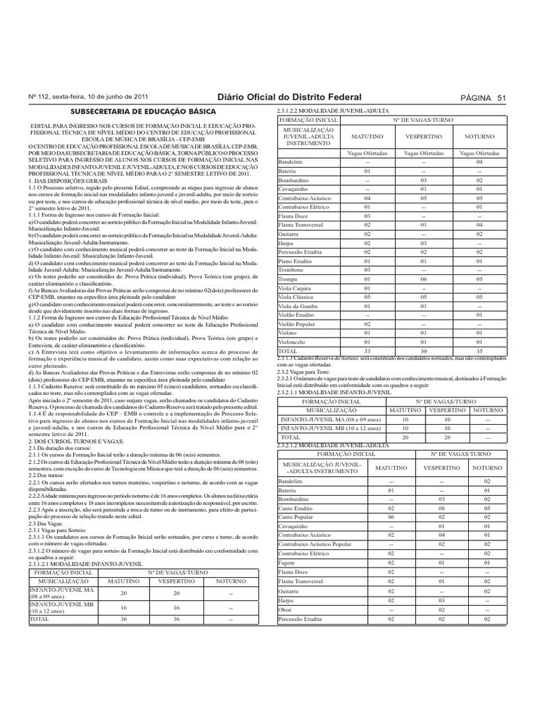 O CENTRO DE EDUCAO PROFISSIONAL ESCOLA DE MSICA DE BRASLIA, CEP-EMB,