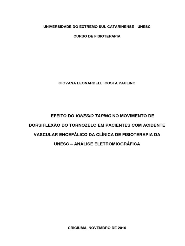 EFEITO DO KINESIO TAPING NO MOVIMENTO DE DORSIFLEXO DO TORNOZELO EM PACIENTES COM ACIDENTE VASCULAR ENCEFLICO DA CLNICA DE FISIOTERAPIA DA UNESC ANLISE ELETROMIOGRFICA