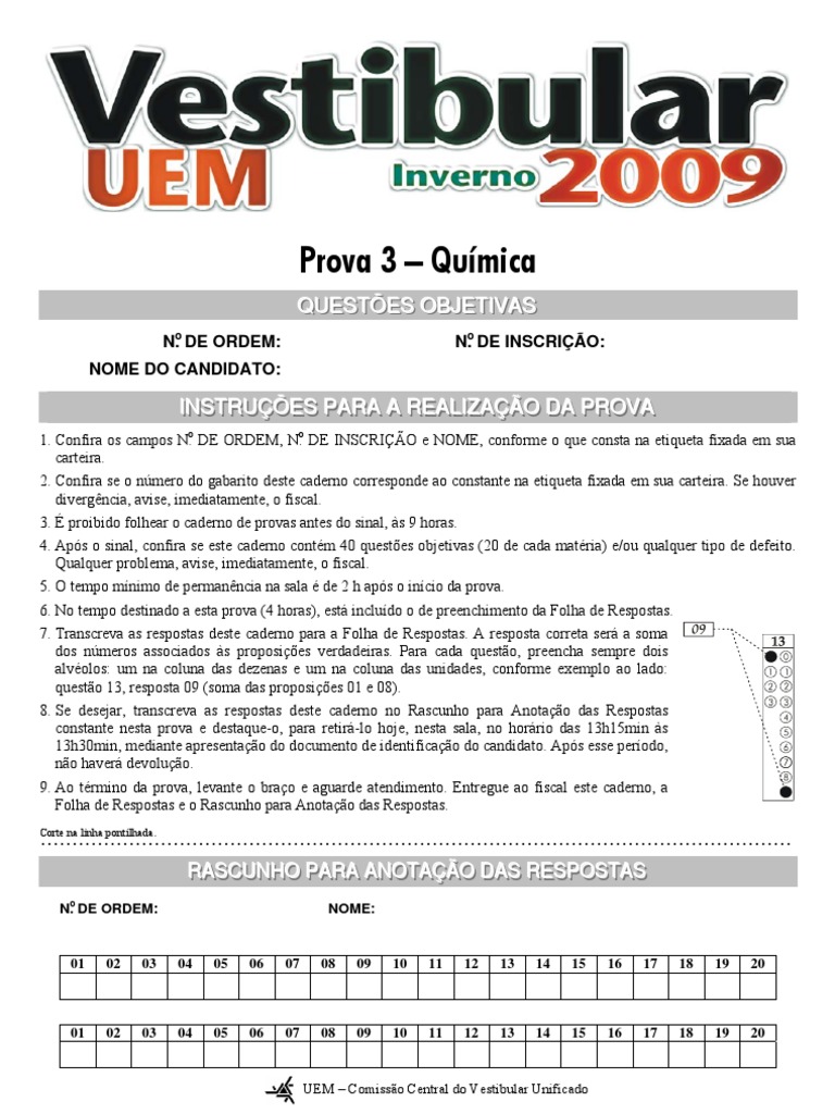 6. No tempo destinado a esta prova (4 horas), está incluído o de preenchimento da Folha de Respostas.