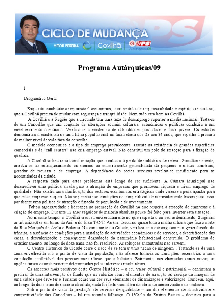 tem legitimidade para reivindicar maior descentralização administrativa. A Covilhã precisa de uma classe