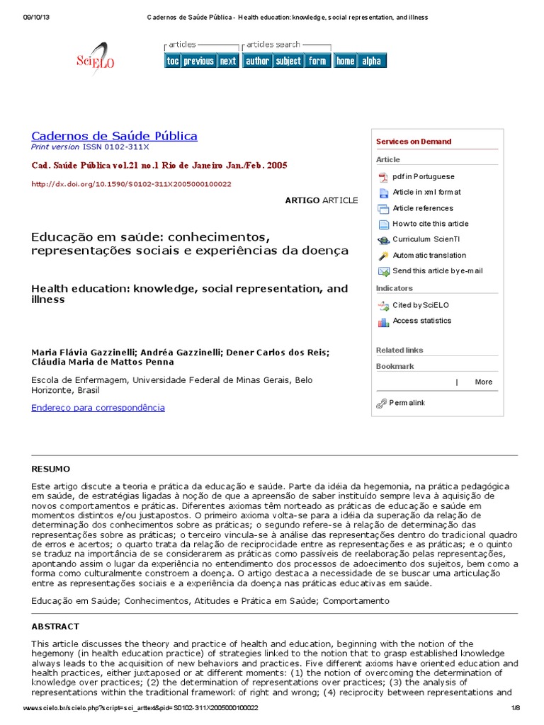 Cadernos de Sade Pblica - Health education: knowledge, social representation, and illness