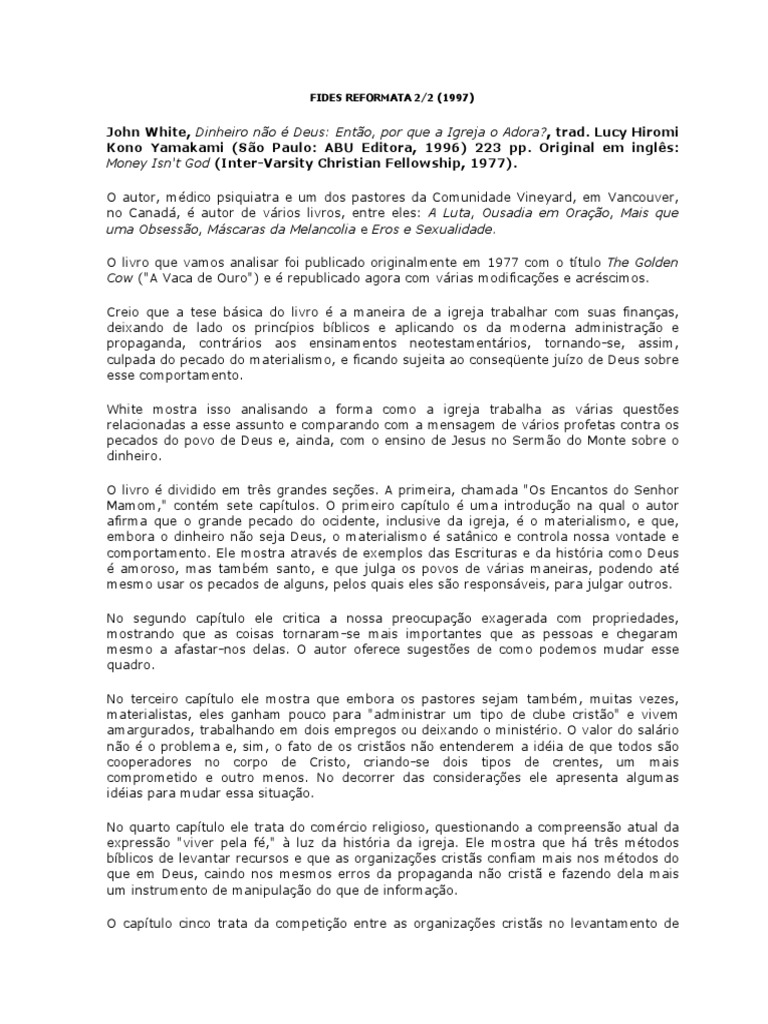 John White, Dinheiro no Deus: Ento, por que a Igreja o Adora?, trad. Lucy Hiromi