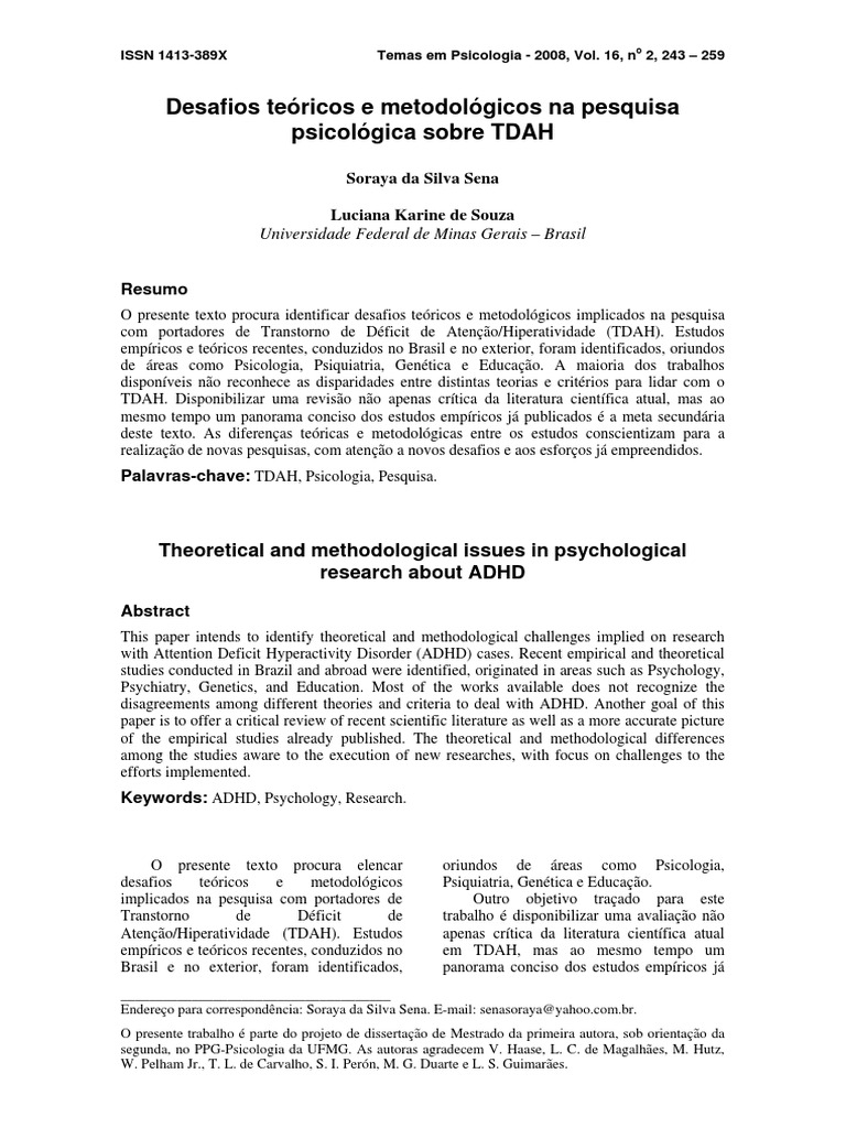 TDAH. Disponibilizar uma reviso no apenas crtica da literatura cientfica atual, mas ao