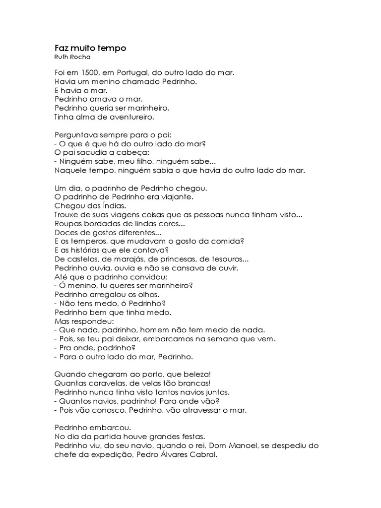 Foi em 1500, em Portugal, do outro lado do mar. Havia um menino chamado Pedrinho.