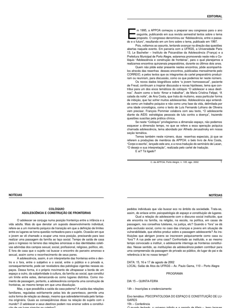 2 C. da APPOA, Porto Alegre, n. 105, ago. 2002