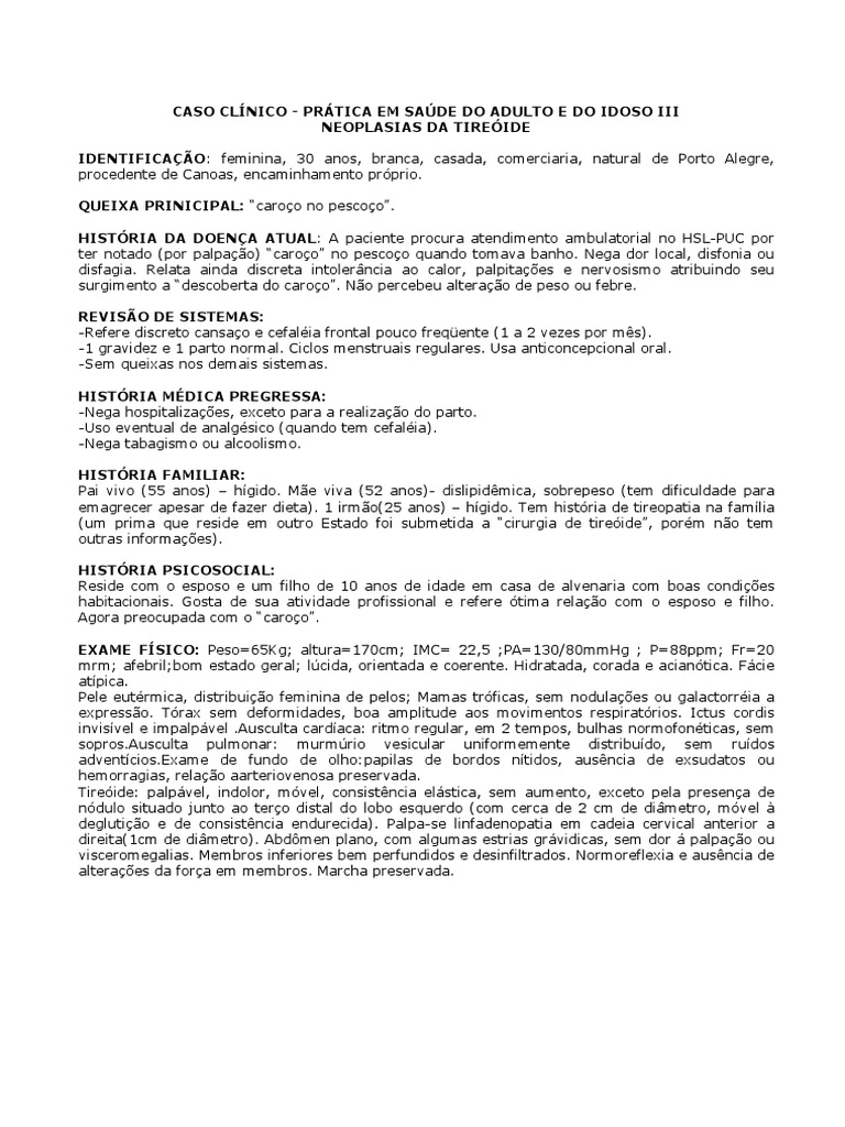 CASO CLÍNICO - PRÁTICA EM SAÚDE DO ADULTO E DO IDOSO III NEOPLASIAS DA TIREÓIDE