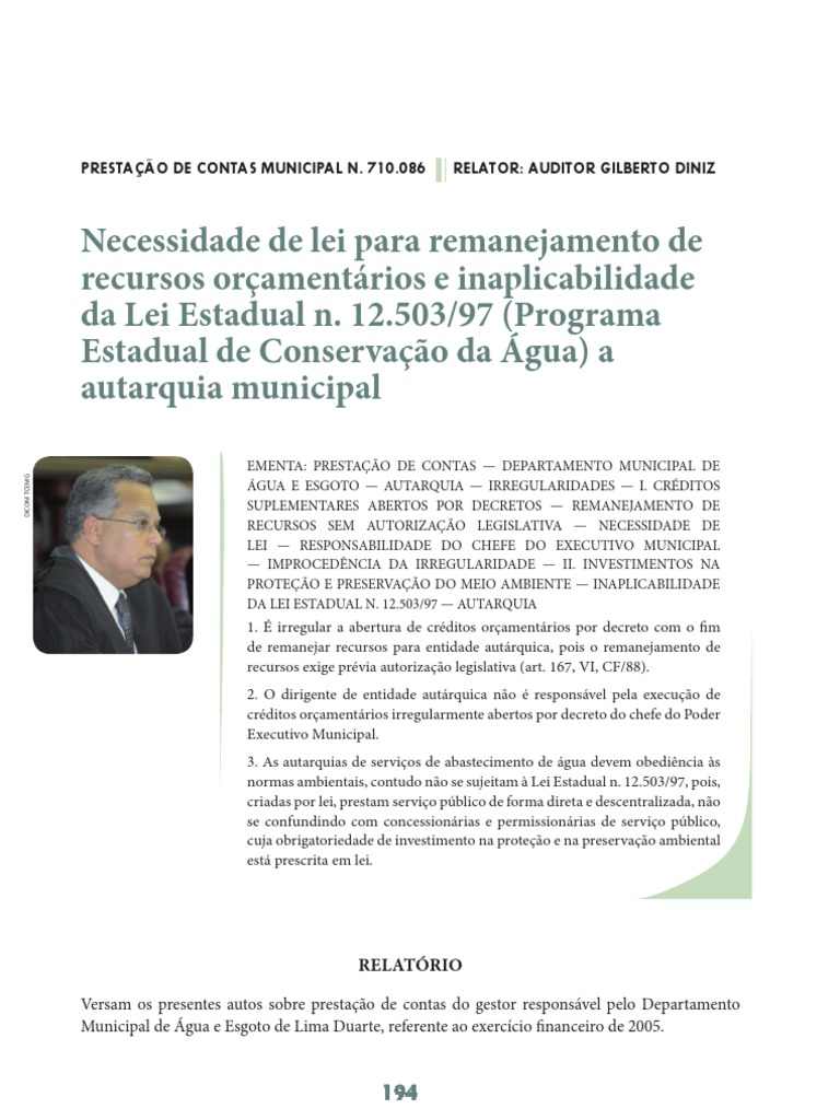 apontamento segundo o qual teria havido descumprimento da Lei Estadual n. 12.503/97.