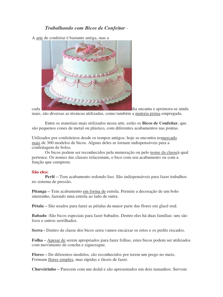 Entre os materiais mais utilizados nessa arte, esto os Bicos de Confeitar, que