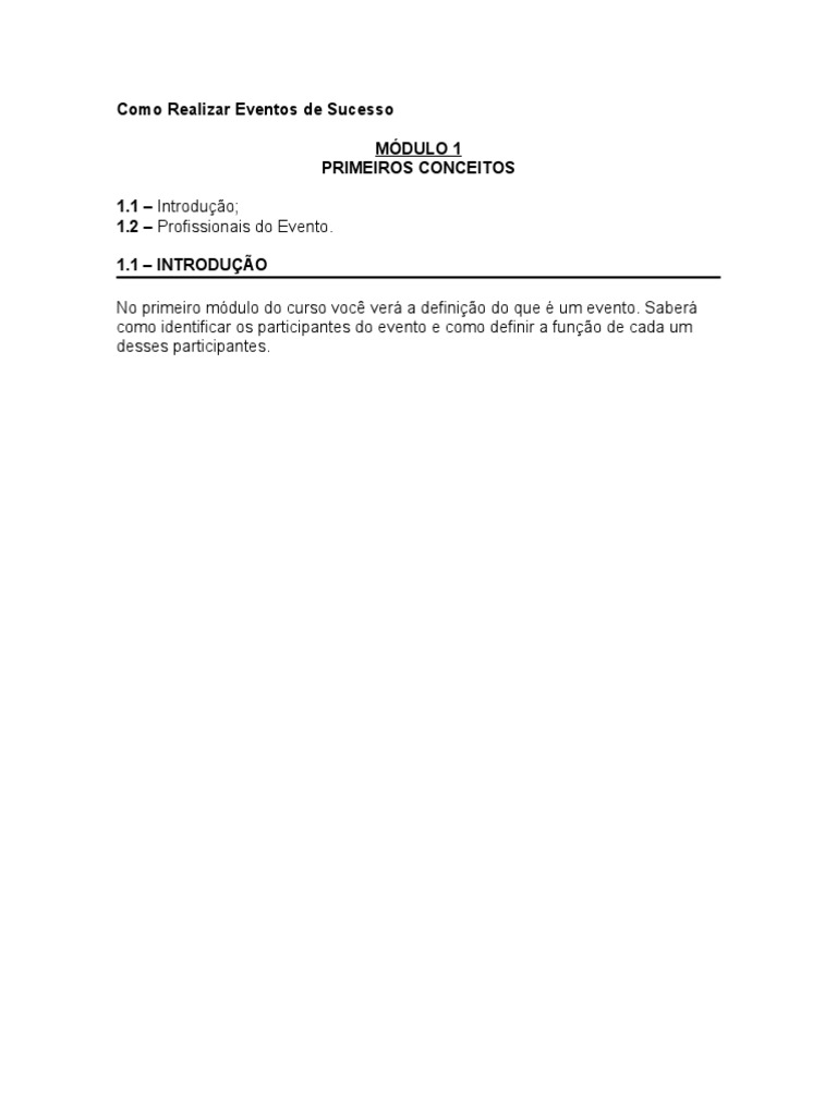 No primeiro mdulo do curso voc ver a definio do que um evento. Saer