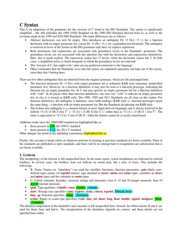 simplified but still embodies the 1989 ANSI Standard (or the 1990 ISO Standard derived from it), as well as the