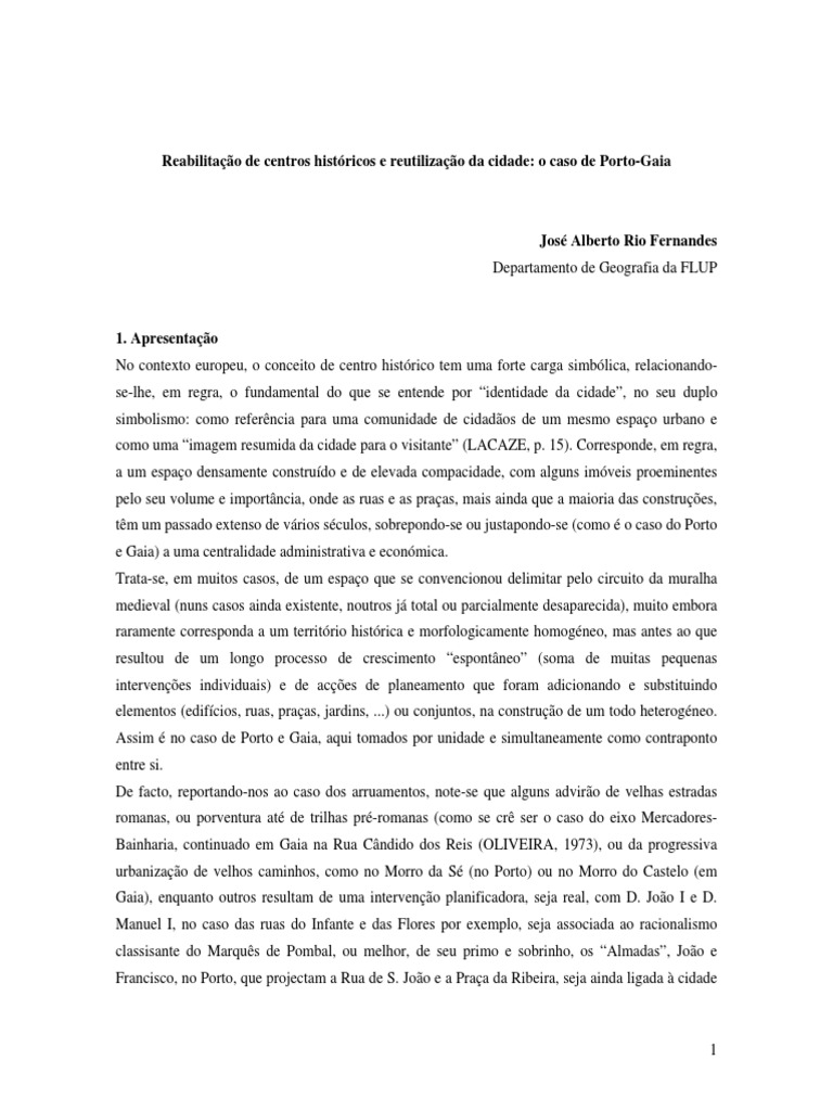 FERNANDES, J os A. Rio (2001). Qualificao e vivificao de reas centrais: o caso da Baixa do Porto,