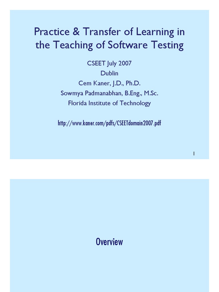 CSEET July 2007 Dublin Cem Kaner, J.D., Ph.D. Sowmya Padmanabhan, B.Eng., M.Sc. Florida Institute of Technology